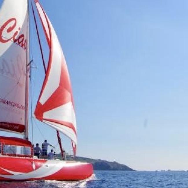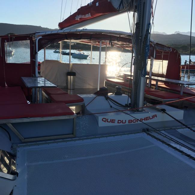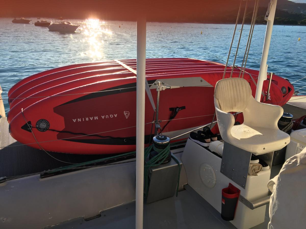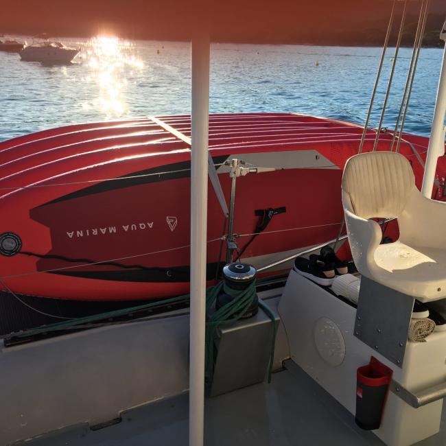 Une navigation à la voile pour plus de douceur, un grand taud de soleil pour l’ombre, des trampolines à l’avant, pour lézarder au soleil, des banquettes à l’arrière et une grande table centrale pour plus de convivialité… notre maxi-catamaran Ciao porte bien son nom, vous n'aurez plus envie de remettre pieds à terre ! Et qui dit maxi-catamaran, dit maxi-paddles !