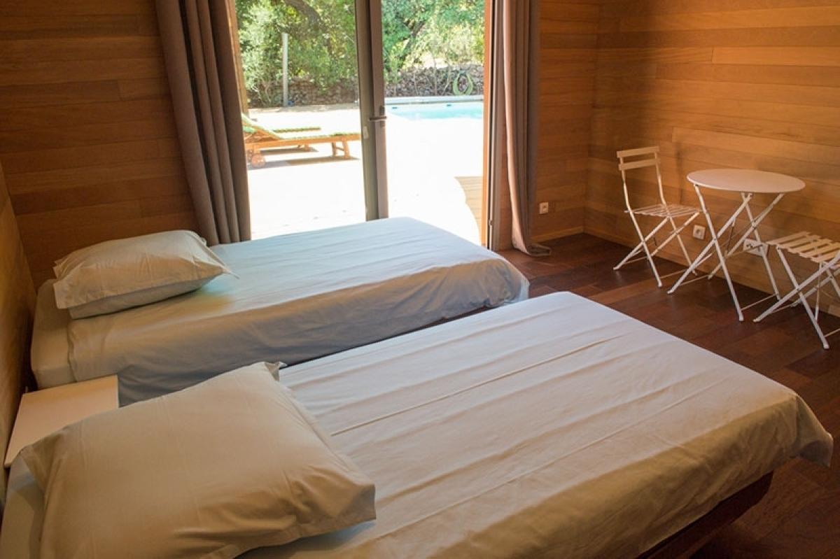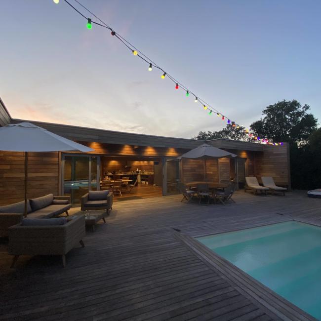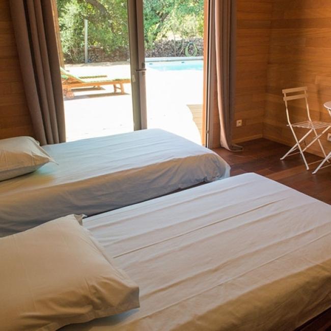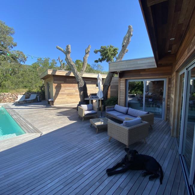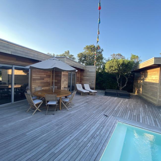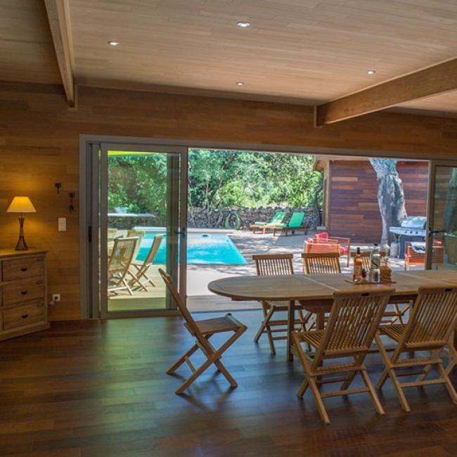 Villa en bois exotique avec piscine chauffée & jacuzzi en location toute l’année.