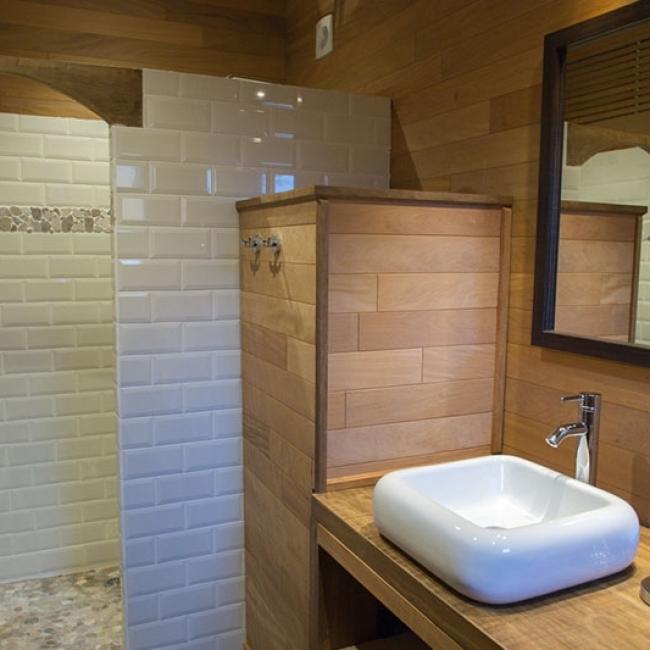 4 douches à l’italienne avec 4 vasques et 4 WC indépendants.